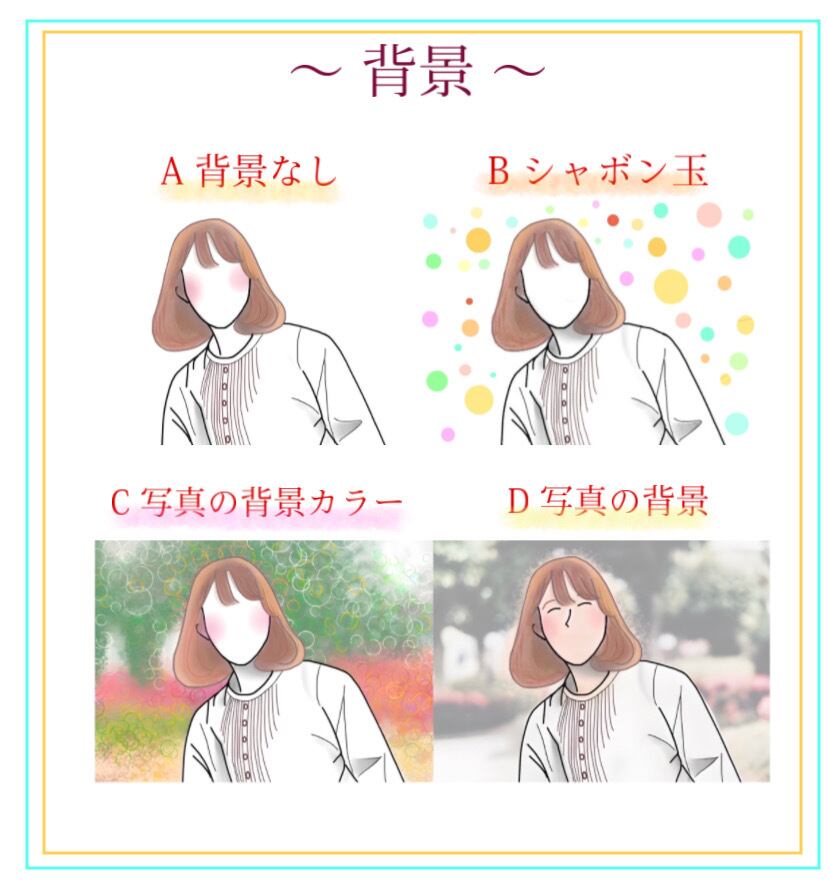 ご購入後、ライン公式アカウントをメールにてお送りいたします。写真の送信と質問内容のご記入をお願いしております。その後、イラストのヒアリングを行います☺︎